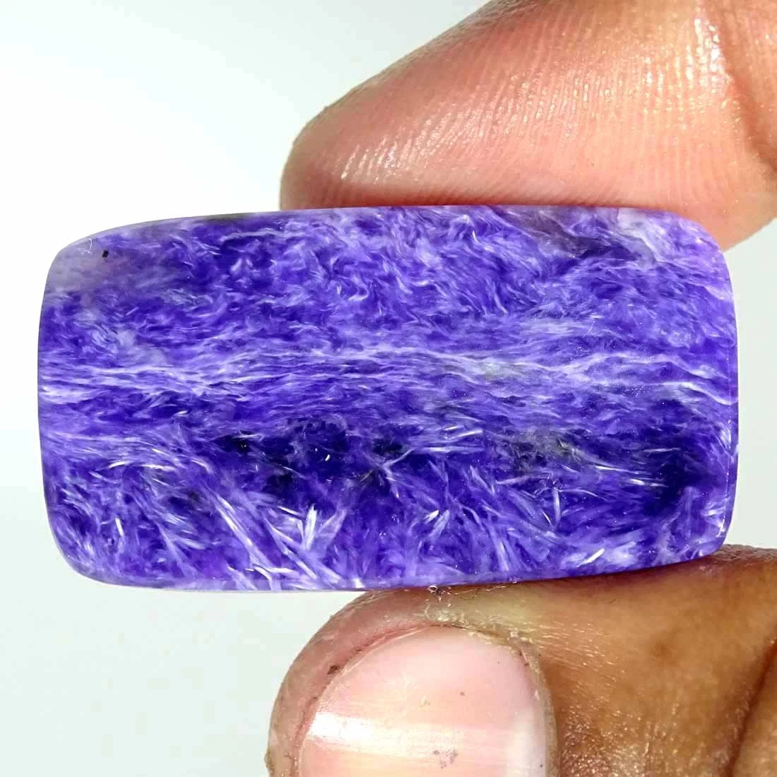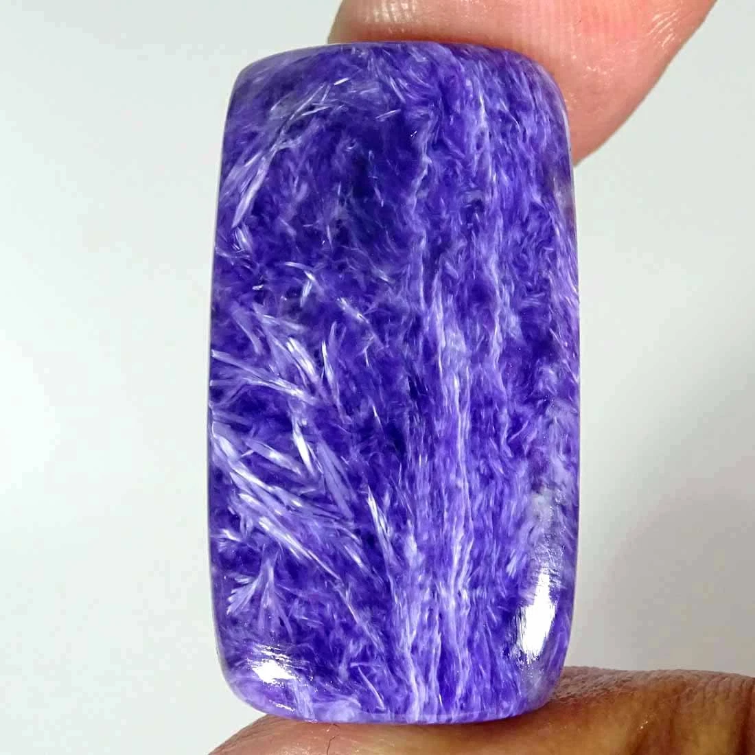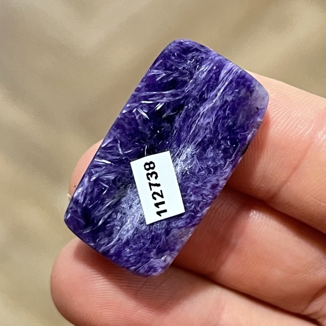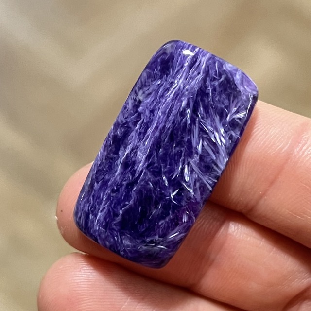Kamień gotowy do oprawy tradycyjnej lub na sutasz. Jednolicie fioletowa barwa charakterystyczna jest dla najwyższej jakości czaroitów.