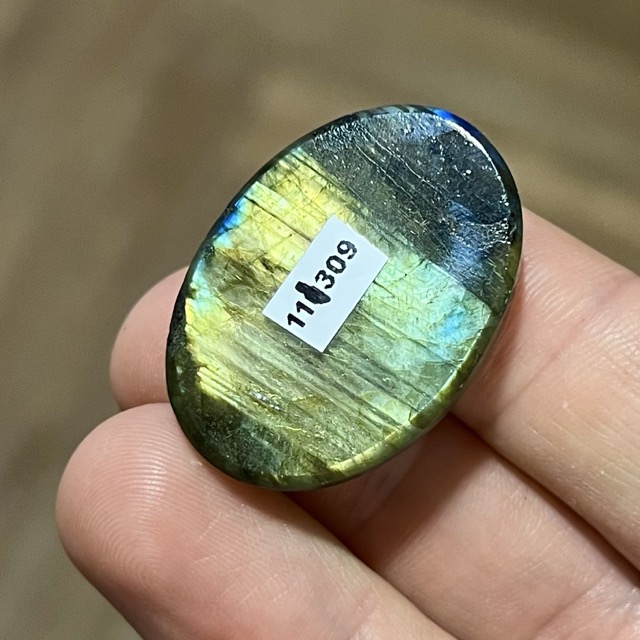 Labradoryt gotowy do oprawy tradycyjnej lub na sutasz. Intensywna niebieska, zielona i złota gra barw w metalicznie lśniących odcieniach.